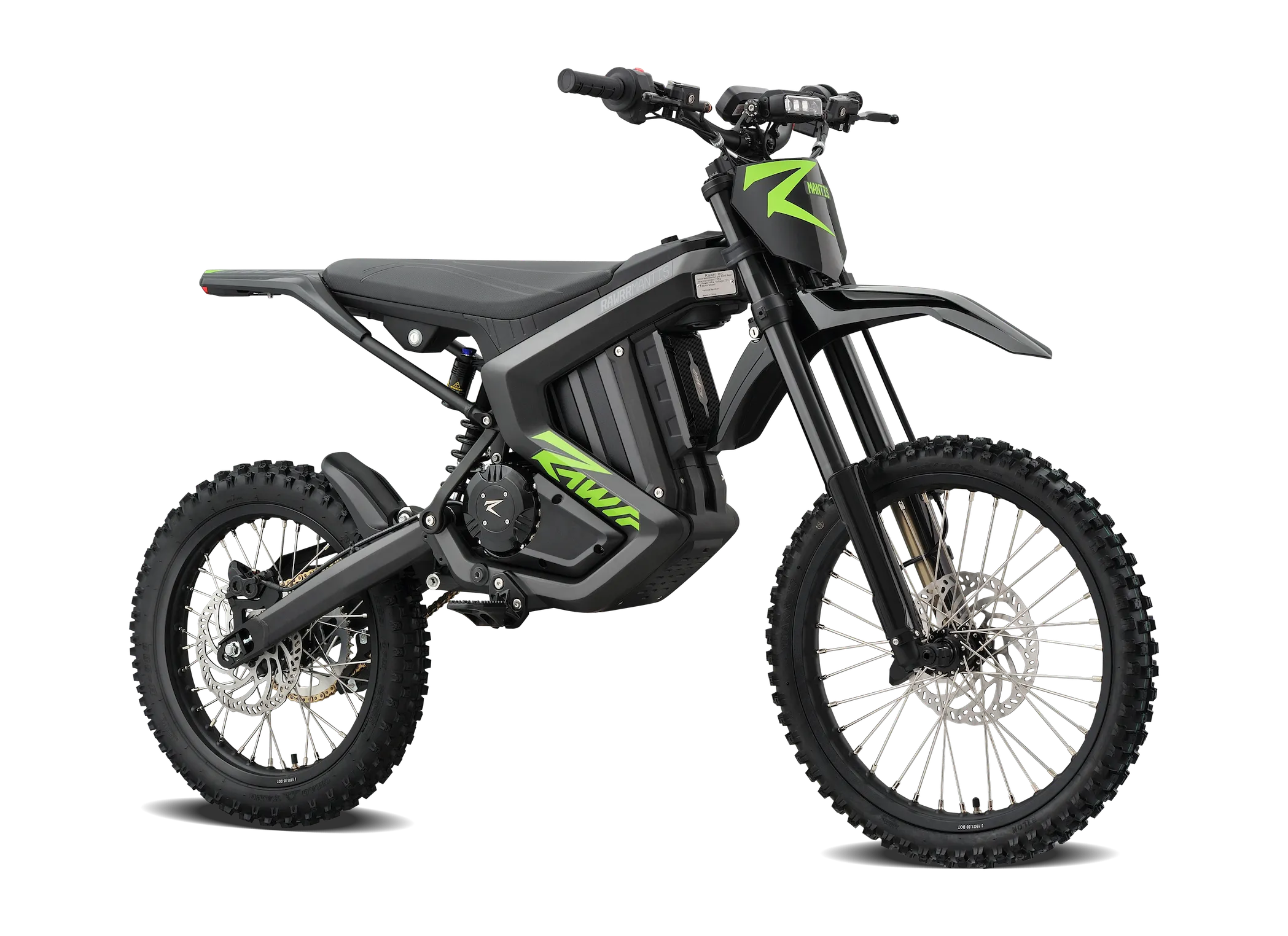 Lightweight dirt missile. Light and nimble, the Mantis X tears up the dirt. Our new medium-sized bike, the Mantis X, has a 32″ seat height, weighs 139 lbs with battery, and is designed to compete head-on with similar bikes in the eMoto category. It has a 19-inch front wheel, 17-inch rear wheel, great front-to-back balance, an LCG for quick transitions, and a solid top speed of 50 mph. It is one of the lowest-priced eMoto in this segment.